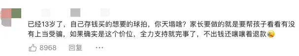 作为家长,陈先生该做的是帮孩子把关,看这支球拍值不值这个价。